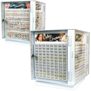 Earring(CZ, Micropave) & Body Jewelry Mix, Floor Turntable LED Display with Lock, 810 PC
